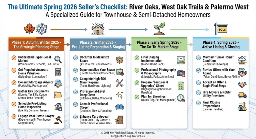 Are you thinking of selling your semi-detached home or townhouse in River Oaks, West Oak Trails, or Palermo West in the spring of 2026? This is the checklist for you. Selling in these specific, family-friendly Oakville neighbourhoods requires a tailored approach to attract the right buyers and achieve a premium price.